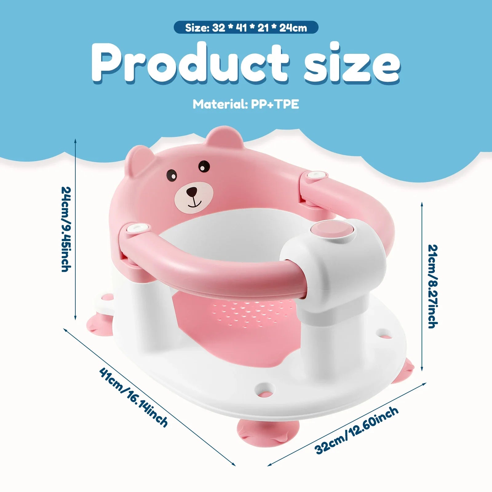 How it works: Place the seat in a clean tub and press down firmly so the suction cups lock onto the surface. Sit your baby in the open design seat so they’re supported and upright while you wash. When finished, rinse the seat clean and lift the tabs/edge to release the suction for quick removal.